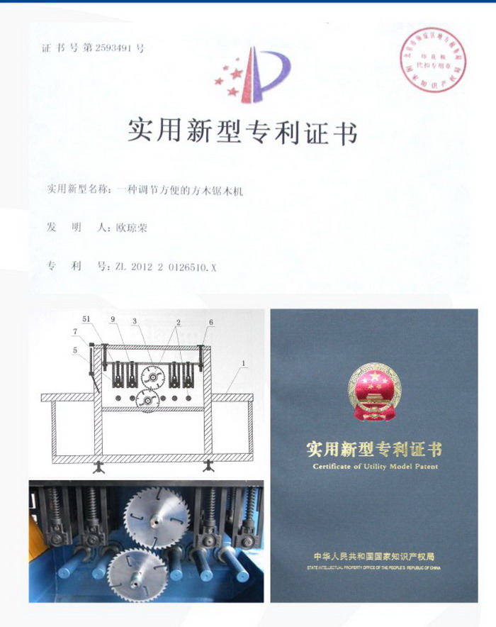 ?方木多片鋸-實(shí)用新型專利證書?