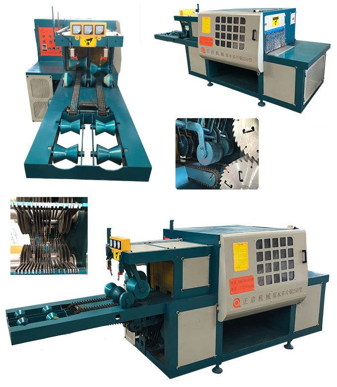ZQ250型雙排鏈原木多片鋸是針對原木鋸切而設計的專用機床,采用五軸結構設計-前鋸后導航確保木板的精確度,無論木板長短均可保證鋸切木材尺寸公差在0.2mm-0.5mm之內,尺寸標準偏差小,節約木料,上下鋸軸,鋸片采用進口帶刮刀鋸片,鋸切表面光滑,無需再刨,保證不燒鋸片。采用自動分中裝置,提高木材的利用率;上壓輥主動增加壓力,送料平穩;軸心噴水冷卻鋸片,去脂降溫,增強鋸片的使用壽命。一次多片,大大提高工效;