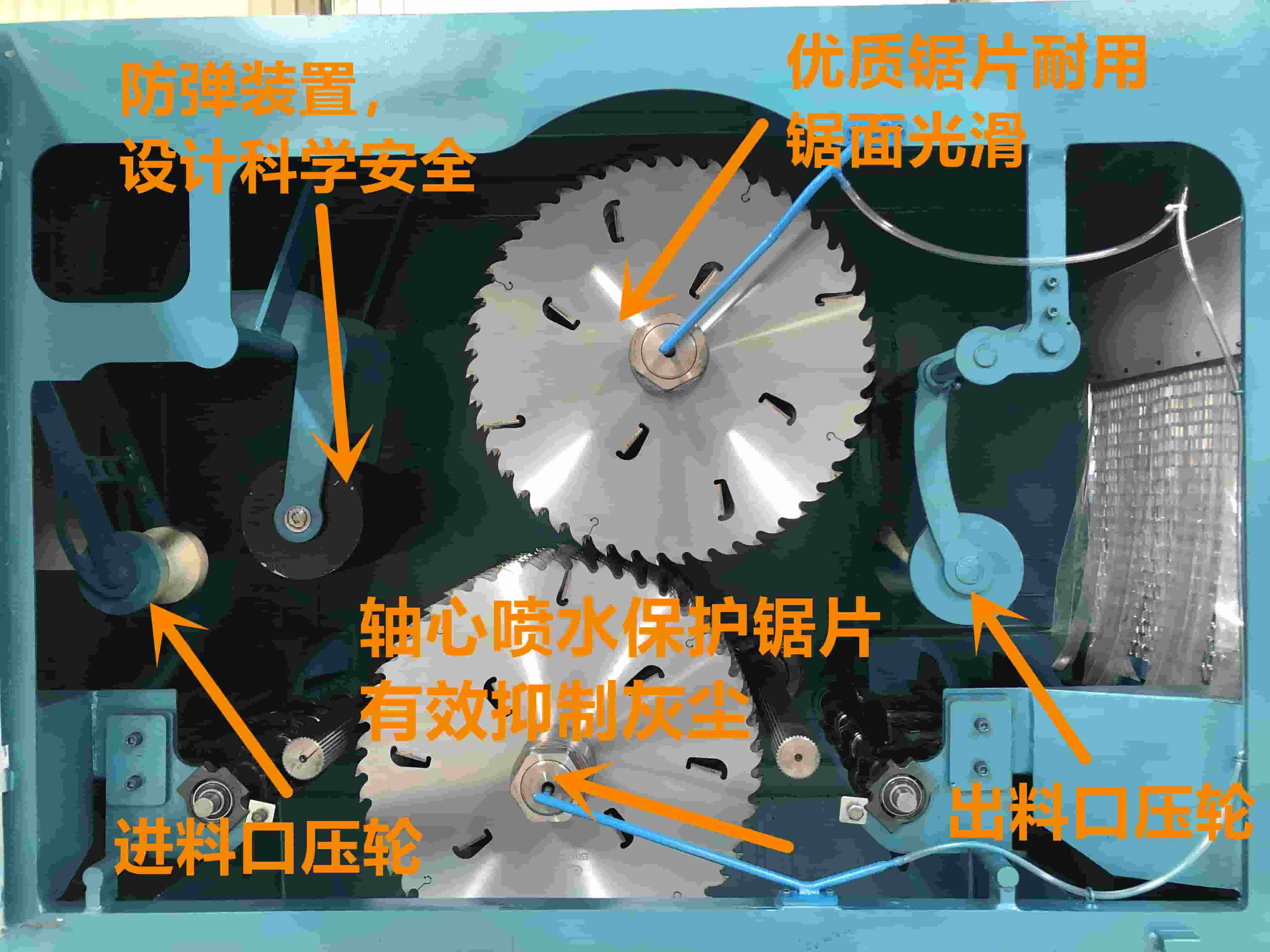 降溫系統:采用軸芯噴水技術,防塵環保,保護鋸片,能確保鋸片持續工作,延長鋸片壽命。