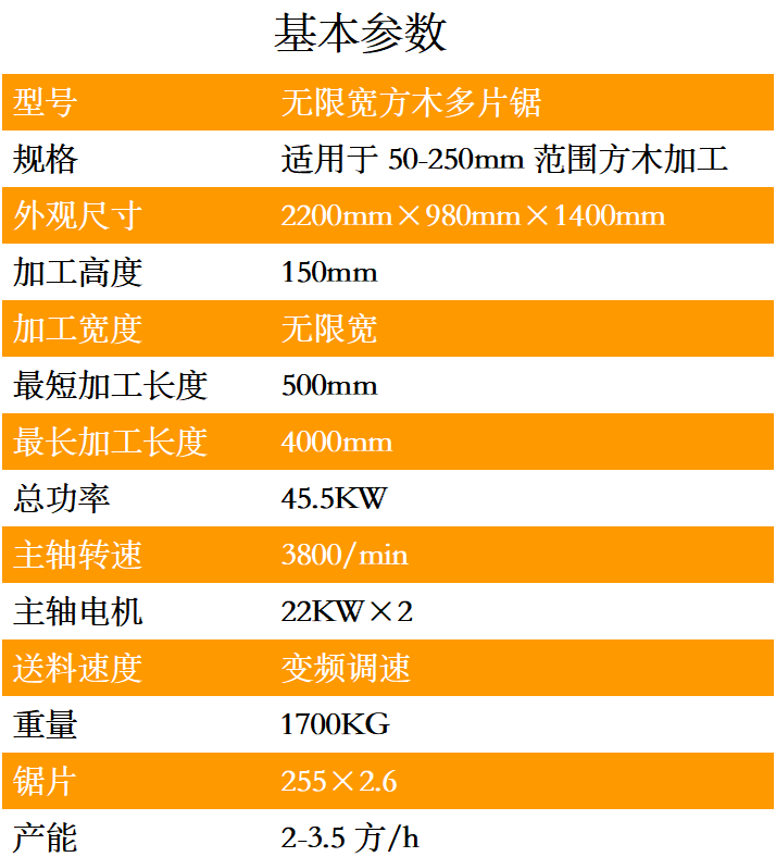 1.方木多片鋸采用獨立5條滾軸傳動設(shè)計,可以保證同一個平面線上,送料平穩(wěn)。