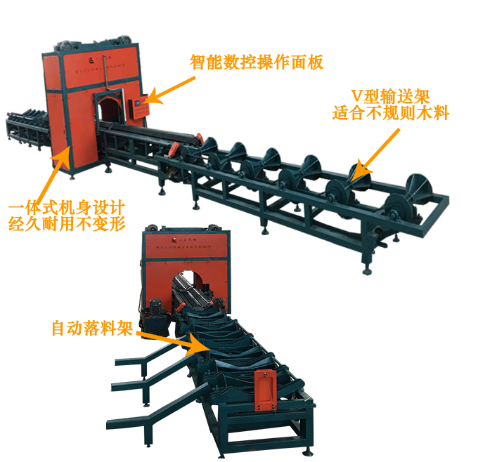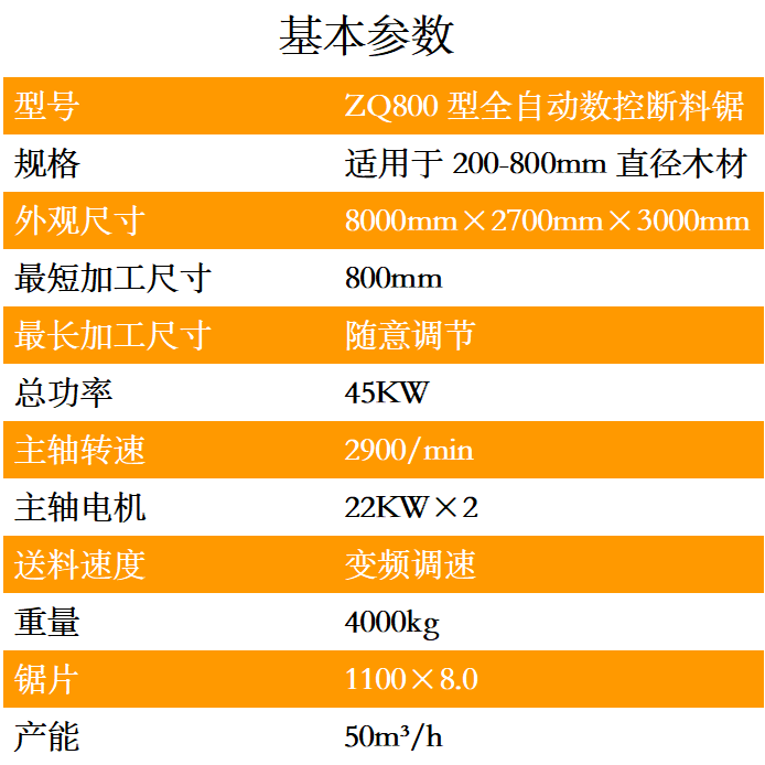 ZQ800型全自動數(shù)控斷料鋸是一種用于截斷圓木的專用機械,可取代傳統(tǒng)的斷木設(shè)備。本機是上下鋸設(shè)計,采用手自一體的液壓驅(qū)動,PLC數(shù)字控制系統(tǒng),只需一名普通工人便可輕松操控,穩(wěn)定性高,加工表面平整光潔,公差在2MM之內(nèi),截斷范圍可以隨意調(diào)節(jié)。加工長度和速度均可根據(jù)實際所需規(guī)格隨意調(diào)節(jié),效率高,是傳統(tǒng)截斷機的2-5倍。鋸片配進(jìn)口合金鋸片,使用壽命長.適用于原生木材,板材板方的切斷加工.本設(shè)備采用輸送臺自動進(jìn)料,自動感應(yīng)壓料,自動截斷,輸送臺自動出料等先進(jìn)裝備,具有操作簡單,安全,效率快,切斷長短可隨意設(shè)定,省時省工,大大減輕操作者勞動強度等優(yōu)點.