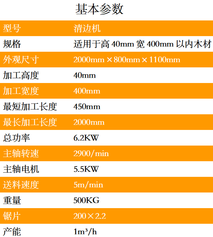 清邊機用于對自然寬木板進行修邊、規格分片、對邊修切、中分、多片成規格分片。鋸面光滑,無需再刨,規格多、送料平穩、修切精度高、安全、效率高、故障率低,是配合原木多片鋸使用的最佳設備。