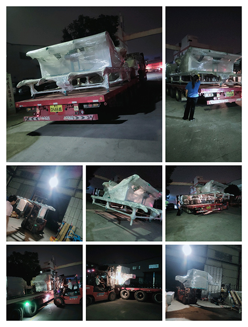 2023年10月25日發江蘇連云港-ZQ350圓木多片鋸、100方多片鋸、ZQ400清邊多片鋸、原木堆料架、斜坡上料架、翻轉自動上料架、無動力輸送架